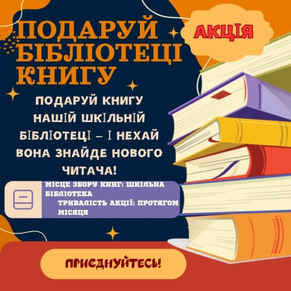 Мета святкування Всеукраїнського дня бібліотек, який відзначається 30 вересня, полягає в тому, щоб вшанувати працівників бібліотечної сфери, розповісти про історію та важливість бібліотек, зацікавити дітей і дорослих читанням та розвивати інформаційну культуру суспільства. В бібліотеці закладу освіти учні можуть отримати не лише потрібну інформації та цікаву книгу, а й відвідати літературні читальні. Бібліотека завжди радо чекає на відвідувачів, а Тетяна Миколаївна поратить та підкаже цікаві та пізнавальні книжки, розповість про літературні новинки. Протягом місяця в закладі освіти триватиме місячник "Подаруй українську книжку бібліотеці", крім того відбудеться акції «Молодіжний бібліодень», конкурс «Селфі з книгою» та книжкової виставки-інсталяції «З колекції дарунків 2025-2026» за участю дарувальників. Запрошуємо приєднатися всіх учасників осітнього процесу!